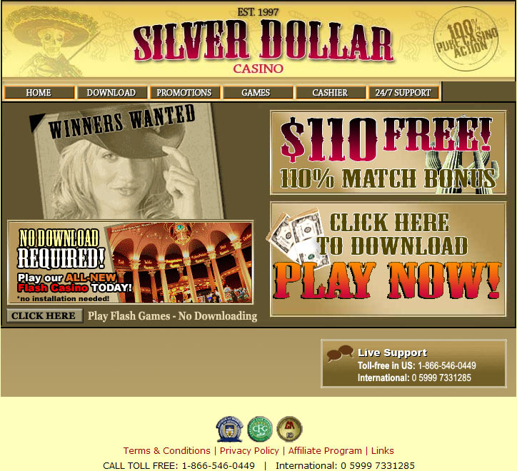 Silver Dollar Casino is another online casino from English Harbour New Ventures Inc. (EHNVI). The casino has the look and feel of a saloon right out of the Wild West, in keeping with the general feel that the name generates, right down to the Wanted poster that also doubles up as a download option. The casino is licensed and regulated by the Directorate of Offshore Gaming, a part of the Government of Antigua and Barbuda. The casino has been around for quite a while now, having launched operations way back in 1997. Currently, it accepts players from all US states except Oregon and Missouri.