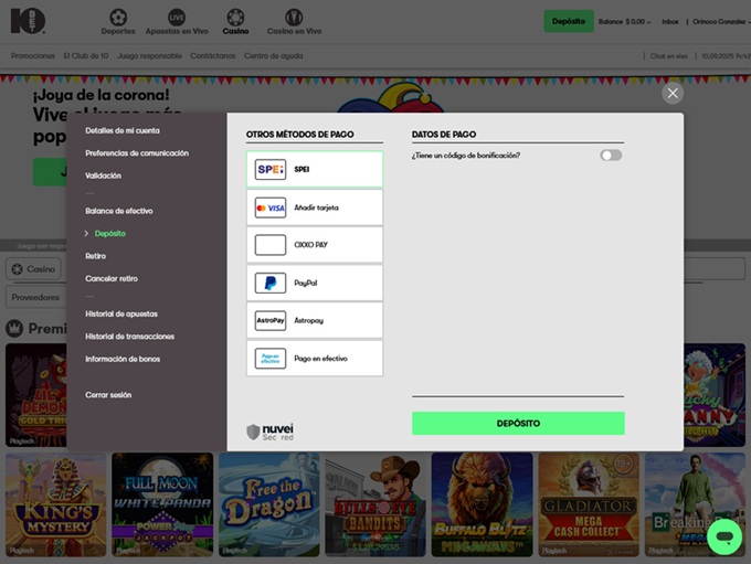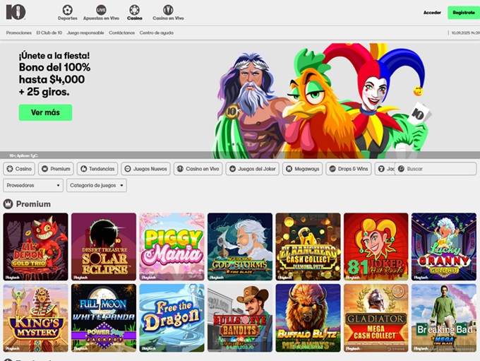 This online gaming hub is focused on the players coming from Mexico, as opposed to 10Bet Casino, which caters to a wider audience. As a result, it offers a slightly smaller gaming library, around 1,000 slots, table games, and live dealers.