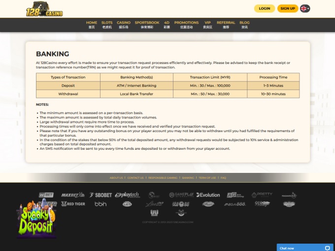 128Casino is an Asian-facing online gambling portal that first launched in May 2012. The site provides players with a variety of betting options including mobile, live casino, sports, poker, slots and more. Software and live dealer providers include Live 22, Gaming Soft, 918 Kiss, 1S Casino live dealers, and Allbet Gaming for mobile.