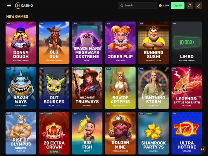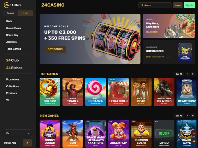 The casino website delivers a clean, straightforward design that makes navigation easy for any player, with the number ‘24’ representing nonstop excitement. This signals to players that this casino is open every hour, every day, for endless entertainment.