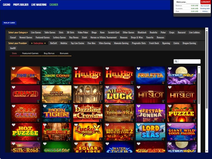 The top-page links can direct players to details regarding the domain’s 300% first deposit and reload bonuses as well as the Comps Points loyalty program while fans of cryptocurrencies will additionally be able to obtain information on how to purchase Bitcoin. This is all complimented by a cashier box explaining the site’s various deposit and withdrawal methods alongside compatriots for its bespoke mobile and casino attractions.