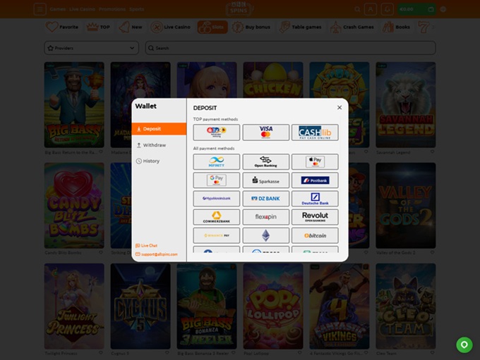 The gaming library here is a standout feature, designed for players who love variety and excitement. Whether you’re into live casino action, spinning the reels on slots, or taking on classic table games, AllSpins offers a comprehensive selection to keep the fun going!