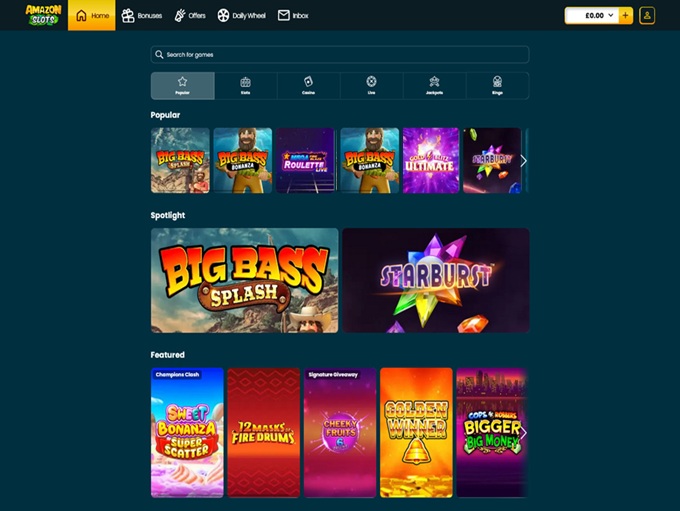 To paint a vivid picture of the casino’s game selection, let us delve into the colorful array that awaits you… As a curious explorer within the world of Amazon Slots Casino, you’ll discover a gaming landscape predominantly adorned with slot games, a prevailing trend in most online casinos, so you can expect titles like: