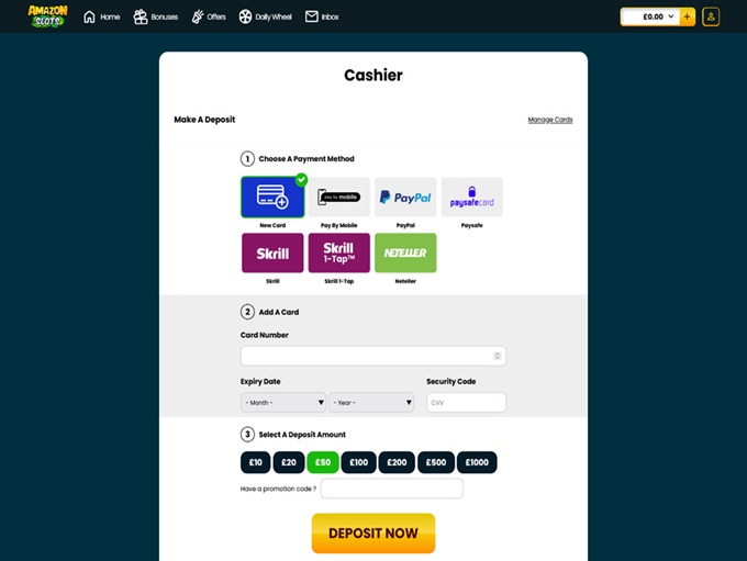 At Amazon Slots, several different payment methods await Canadian players, offering a seamless financial journey. The roster includes familiar names like Visa, Maestro, Mastercard, and the trusty Interac. What’s noteworthy is that these channels gracefully cater to both deposits and withdrawals, enhancing convenience for players.