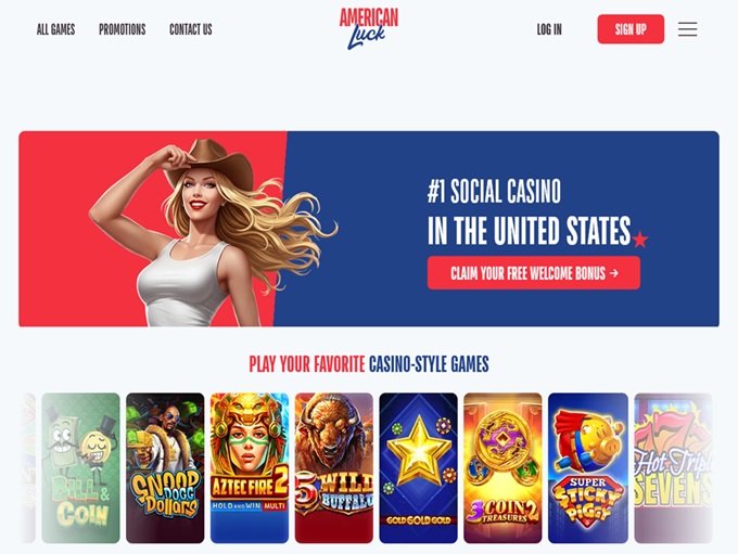 Advertising itself as the #1 social gaming site in the United States, American Luck operates as a sweepstakes brand under the sweepstakes rules for US players aged 18 and over.