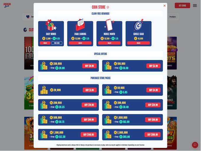 American Luck follows the familiar sweepstakes casino rules, built around two types of virtual currency. It sounds technical at first, but it’s actually pretty straightforward once you get into it.