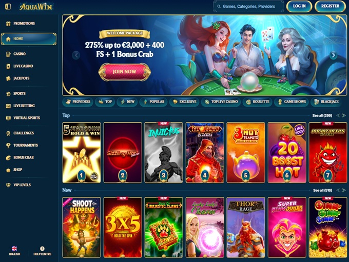 Alright, visually, AquaWin meets the expectations. It has the design, the theme, and the overall feel we’d expect from a serious platform. But the real question is: what’s actually inside, and what is this place packed with? At first glance, it ticks all the boxes for a great gambling experience, gambling and betting to be precise. Beyond thousands of top slots, table games, live casino titles, and jackpots, there’s also a serious sportsbook. You’ve got everything that could interest you, and then some more.
