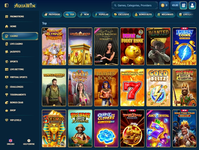 If AquaWin had one obvious flex, it’s the game library. This platform leans heavily into slots, but it doesn’t stop there. Beyond slots, the casino also includes table games, live dealer titles, game shows, jackpots, and some exclusive releases.