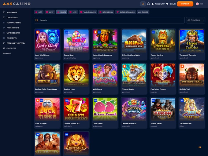 Choose between amazing 4000+ titles in the gaming library! Many of the games available at Axe Casino are frequently included in casino tournaments. These are perfect if you want to play your favorite games while still having the opportunity to earn additional incentives. The casino categorizes its game collection by genre. These selections include New, Slots, Live, Jackpots, Roulette, Cards, Bonus Buy, and Drops & Wins.
