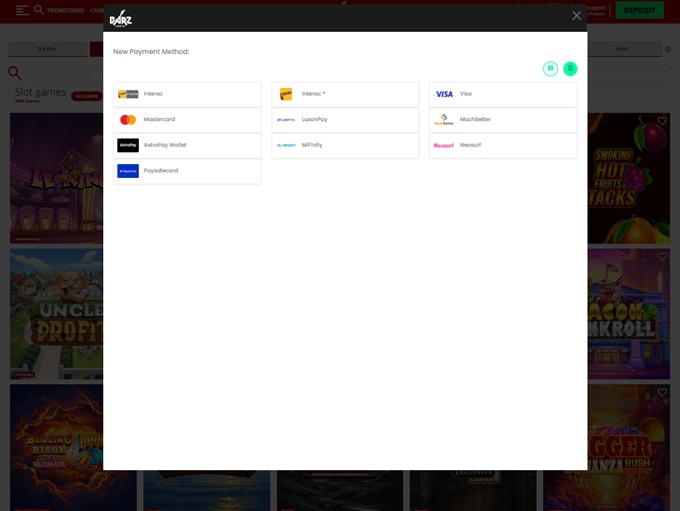 Banking options are provided for the world at large as well as for players in certain sometimes underserved regions like Canada, Germany, New Zealand, and Ireland. There are at least 15 deposit methods listed as well as more than half a dozen avenues provided for withdrawals. Among them are Trustly, Visa/Mastercard, Klarna, InstaDebit, and Interac, as well as eWallets and bank wires.