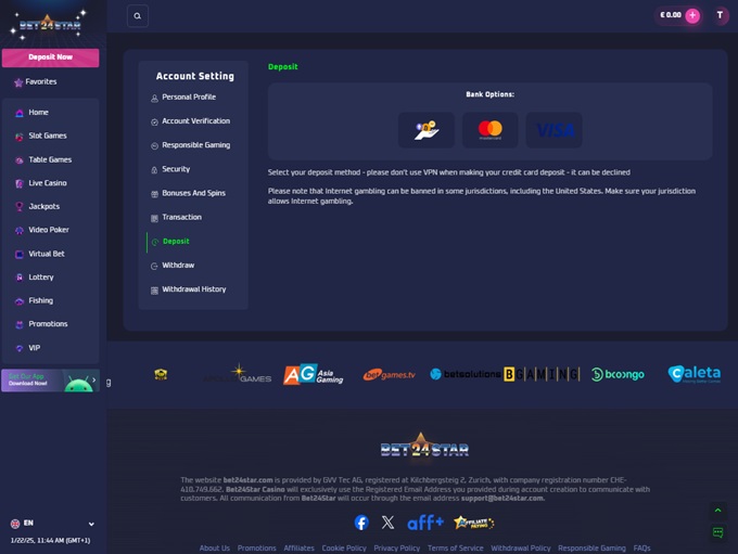 The registration steps for Bet24Star are somewhat straightforward and take only a moment to complete and most games are demo available, so if you are not quite sure, you can test for yourself.