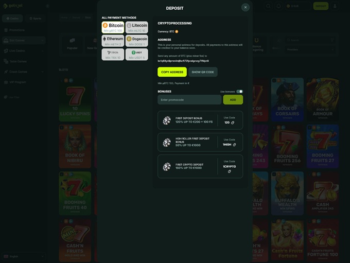 Beyond the standard welcome package, BetNJet leans heavily into bonuses that target specific users. High rollers get their own packages with simpler rules and higher limits, while crypto users can enjoy separate deals tailored specifically to digital currency deposits.