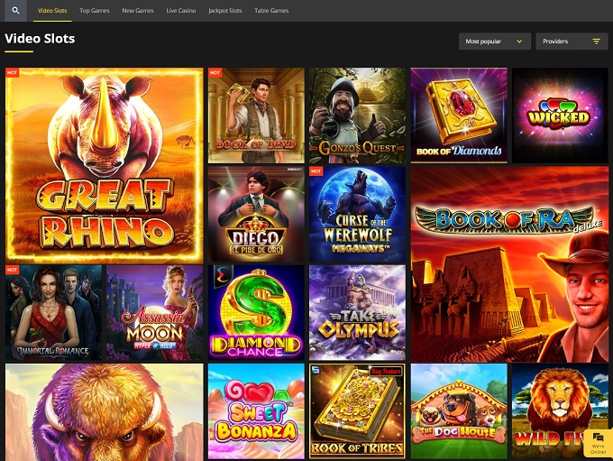 The host of providers in this section is vast with about 20 top-tier names. Games from Microgaming and Microgaming Studio partners like Switch Studios can be found alongside those from Spinomenal, Evoplay, Playson, and Amatic to name a few.