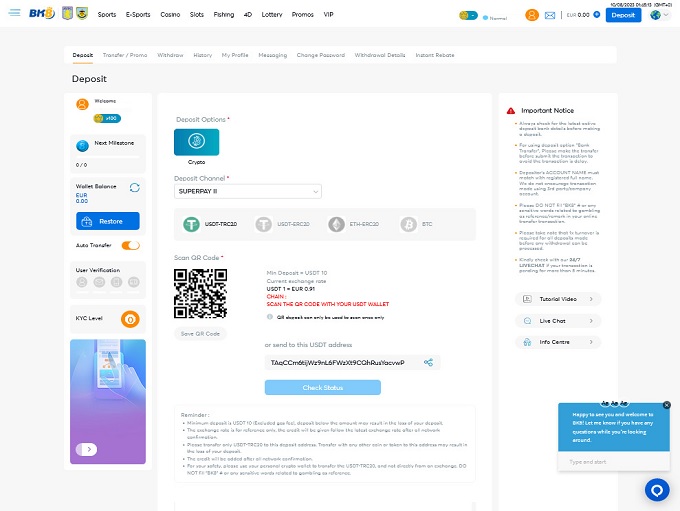 Withdrawals at BK8 are both fast and efficient, offering several methods for cashing out funds from your account. You can withdraw via Bank Transfer, with options available for members registered in Indonesia (with IDR-denominated accounts), Thailand (with THB-denominated accounts), Malaysia (with MYR-denominated accounts), and Vietnam (with VND-denominated accounts). Simply select "Bank" under the Withdrawal menu, enter the desired amount, and provide your bank account details. Additionally, for security purposes, we may request documents such as a photographic ID and a bank account statement.