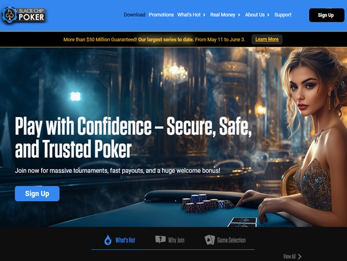 Alright, let’s be real-this site was clearly made with poker players in mind. We mean, Black Chip Poker... kinda says it all, right? So, let’s not pretend there’s some big mystery here. It’s poker, poker, and yep ...you guessed it - more poker! This isn’t some new kid on the block either. We’re looking at one of the best online poker platforms, running the tables since way back in 2008.