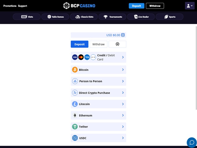 Black Chip Poker is crypto-friendly-which is always a win in this industry. You can make deposits and withdrawals using Bitcoin, Ethereum, Litecoin, and Tether, alongside more traditional options like credit cards, Luxon e-wallet, and the Person-to-Person method.