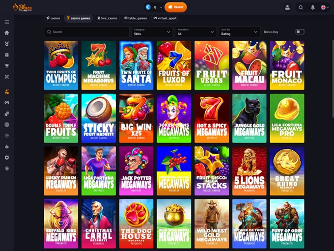 ‘Spins’ in the casino name hints at a plethora of one-armed bandits. Unsurprisingly, the slot section rocks! You can find reel slots, Megaways, Bonus Buy, progressive slots, fruit slots, etc. The most interesting titles we’ve come up with are: