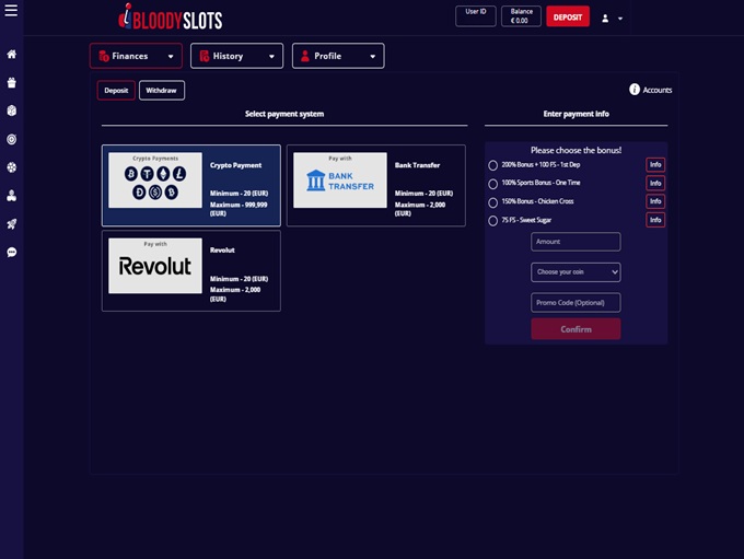 Bloody Slots online casino and sportsbook works with both traditional fiat payment methods and new, cool crypto options. That’s the good side of the story. Now here comes the part that’s maybe not so great.