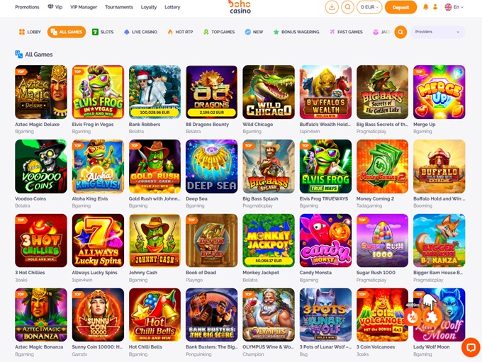 A highroller bonus is also available, and the casino advertises it as ‘Time for a Really Big Fish! All BOHO Casino Players Deserve More, Make a Deposit and Start Winning!’