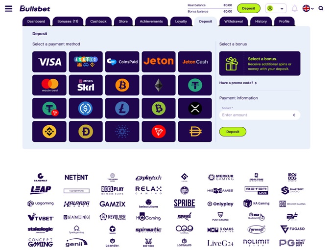 BullsBet is operated by Bullish Entertainment B.V., registered with a gaming license from Curacao, ensuring a safe and secure gaming environment for all players. At first glance, it's evident that this casino accepts cryptocurrency to attract players and deliver a faster and more modern approach to online gambling.