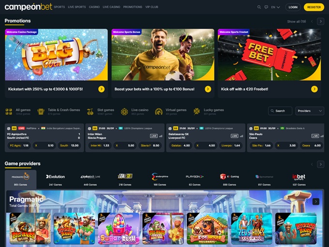 Campeonbet is a full spectrum online gambling portal launched in 2017. The website offers live sports betting, sports lines, a traditional web casino, and live dealer streams as well as multiplayer live poker and backgammon offerings.