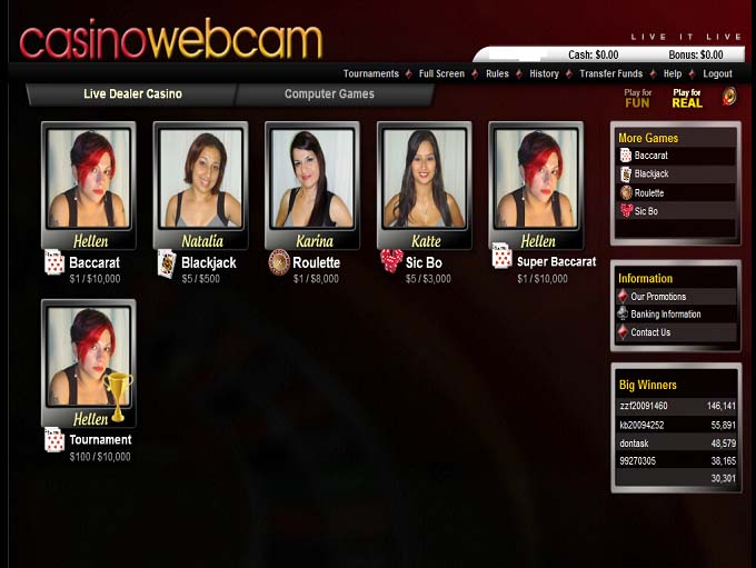 CasinoWebCam is the real thing! It's clearly geared towards the male gambler with hot women dealing all the games - in fact, check out the page on "meet the dealers" and you will be pleasantly surprised if you're the typical gawking male... For instance, here are a few of the dealers.