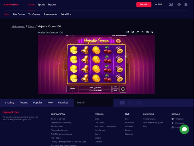CasinoAndYou provides an impressive all-around gaming platform built on variety, flexibility, and trust. With thousands of high-quality games, support for numerous currencies, and a multilingual interface, it caters to players from across the globe. The payment system stands out as one of its strongest features, offering fair terms and exceptional withdrawal freedom rarely seen elsewhere. Altogether, this casino positions itself as a reliable and rewarding choice for online casino enthusiasts.