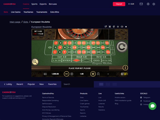 The casino also upholds strong anti-money laundering policies, requiring players to wager their deposits before requesting a withdrawal — a standard industry measure that ensures fair and transparent gaming. CasinoAndYou combines security, flexibility, and convenience in its payment system, creating a reliable environment for both deposits and withdrawals.