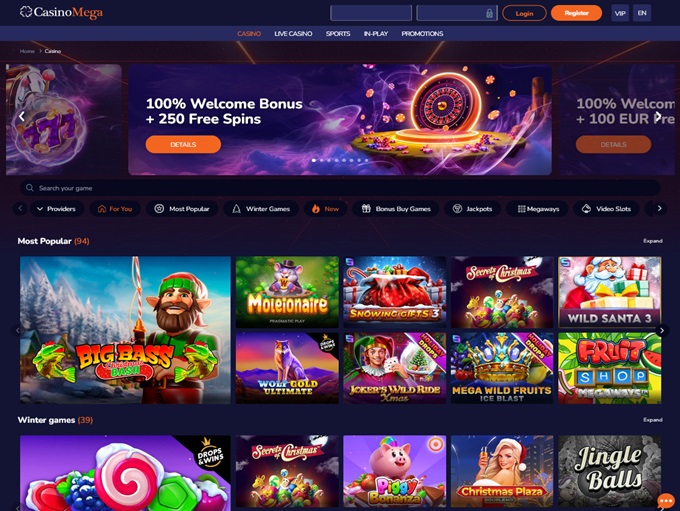 CasinoMega has very attractive Welcome Deals for both – sportsbook and casino players. Each of these promotions requires a qualifying deposit for a Welcome Bonus granting the extra funds for the designated gaming activities. The casino bonus carries a standard wagering requirement which must be cleared within a somewhat short deadline.