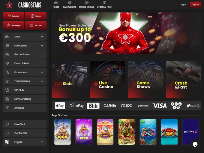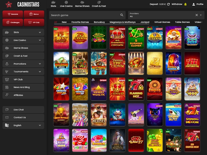 Versus Odds B.V. introduces a new platform in 2024, epitomizing the essence of casino entertainment, particularly in slots and other games. Governed by the Curacao government, CasinoStars ensures legal and secure gambling for its users. The platform features an attractive design with a well-chosen color palette, enhancing the overall impression. Additionally, it supports multiple languages, including English, Spanish, German, French, Portuguese, and Norwegian, making it accessible to a diverse audience.