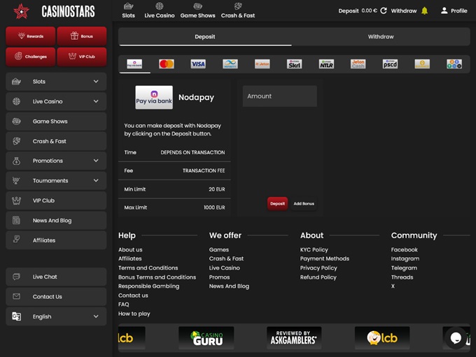For those who prefer cryptocurrency, CasinoStars is a perfect match, offering a wealth of digital deposit options. Players can use popular coins like BTC, ETH, and USDT, as well as niche options such as XRP and the privacy-focused Monero (XMR).