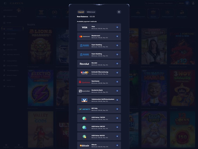 As usual, available payment methods can change depending on where a player is located. The casino makes this easy to check by allowing users to select their country in the payments section and see which options apply to them. That small detail helps avoid confusion before heading to the cashier.