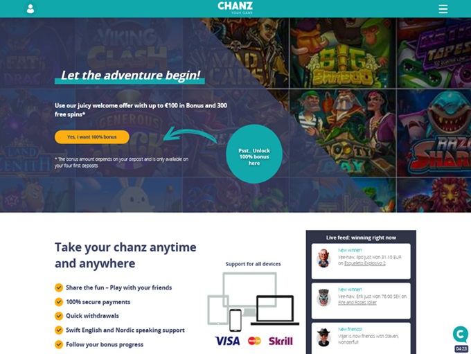 At first glance, Chanz looks like a barebones run of the mill casino. With every deeper look, we see that first impressions can be deceptive. The unique licensing jurisdiction does not give any pause as the Estonian online regulatory framework is robust and well enforced. After several years of operations, they have maintained exemplary customer service.
