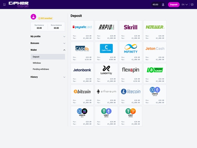 Did Chiperwins’ design get real time and effort, or was it thrown together fast, so it ends up looking like just another copy in a sea of similar sites? Hand on heart, it’s closer to the second one. This is one of the typical online casino platforms built over the last few years. Most of them look more or less the same, and the differences usually come down to colors. Chiperwins goes for a minimalist approach with a purple-based palette. There isn’t much more to say here. Once you open the site, you’ll see it for yourself. It looks like many others. However, that’s not automatically a negative comment. The upside of blending into the crowd is that it gives players a sense of familiarity and ease of navigation, even if the visuals aren’t exactly creative.
