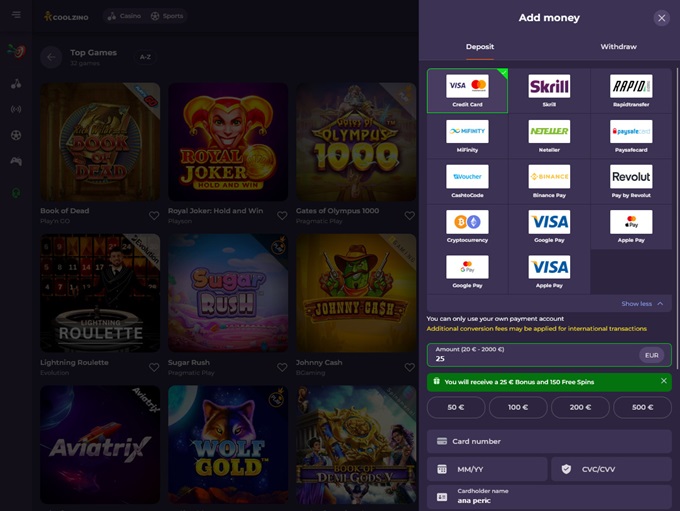While the variety of payment options could be expanded, the platform excels in game selection, security, and user-friendly design. Whether spinning the reels, testing strategies at the live tables, or placing bets on major sporting events, Coolzino provides an exciting and rewarding environment for players.