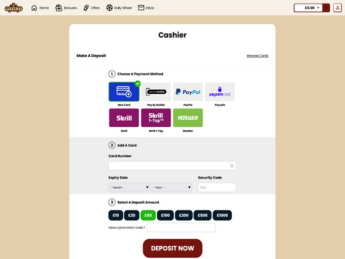 The Saloon theme picks back up when you enter the promotions section with smooth calls to be your hombre from the very fist spin and offers to 'wet your whistle' with a cool welcome offer. If the western themed slots that fit the theme are available in your neck of the woods you may be offered extra spins on a wild west game or another suitable slot to go along with any match bonus. Offers change over time of course, but they keep the theme authentic and fun. Be sure to check max bet limits associated with your deposit method if you take a bonus. SoN also has some unique terms, so getting to know them should help to avoid any disappointment.