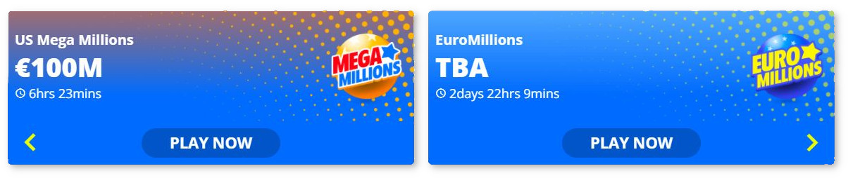There are about 20 international lottery draws to bet on. You'll find the lotto name, host country, current jackpot, and next draw time on the site.