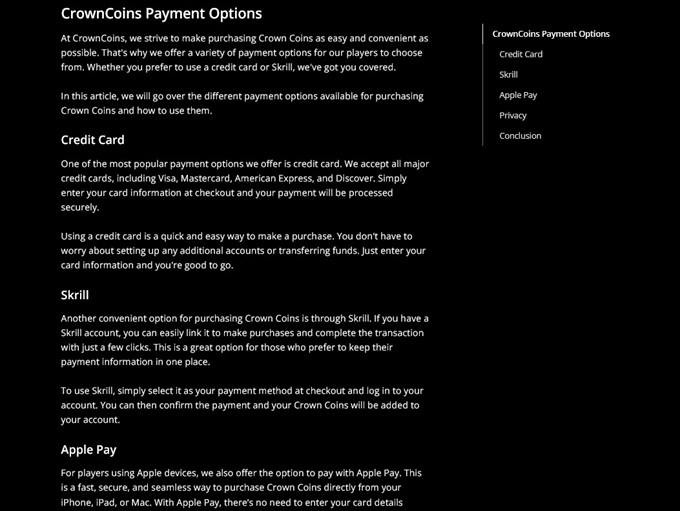Crown Coins Casino combines ease of play with secure payment and redemption options, making it an appealing choice for players seeking entertainment and rewards without unnecessary complications.