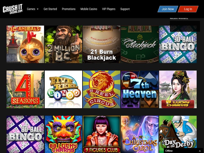 CRUSHIT Casino offers players a variety of games, but not a great variety. US players are welcome. While geolocation doesn't work, mobile optimization does so you can visit the site on any device and the casino will adapt to display a mobile-friendly version if it should. Players can register, log in, and play from any device and the games are the same no matter how you access them. Android, iPhone, iPad, tablets, laptops, and desktops are all supported.