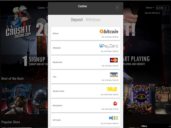 Players everywhere will find plenty of ways to deposit using traditional methods like debit and credit cards, Bitcoin, or a variety of specialized options which you can view in the cashier section.