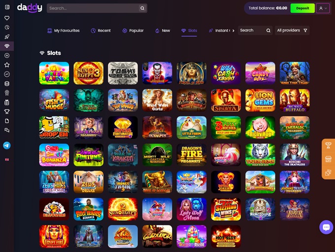 Founded in 2023, Daddy Casino stands as an online gaming oasis, beckoning players into a realm of unparalleled excitement. With a plethora of gaming options, from casino classics to live dealer thrills and poker prowess, this casino guarantees an unforgettable experience. Boasting a curated collection of several thousand titles from 30 cutting-edge software studios, this establishment caters to the diverse tastes of its global audience – though the precise game count may dance to a different tune depending on your location.