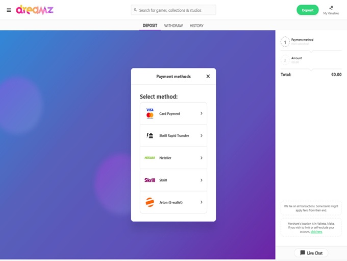 Dreamz Casino is a hybrid instant banking gaming site with deposit and withdrawal options for players outside of BankID supported countries.