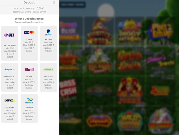 Each country has its own deposit and withdrawal methods if you are choosing traditional payment processing. Skrill is only available for players in Norway.