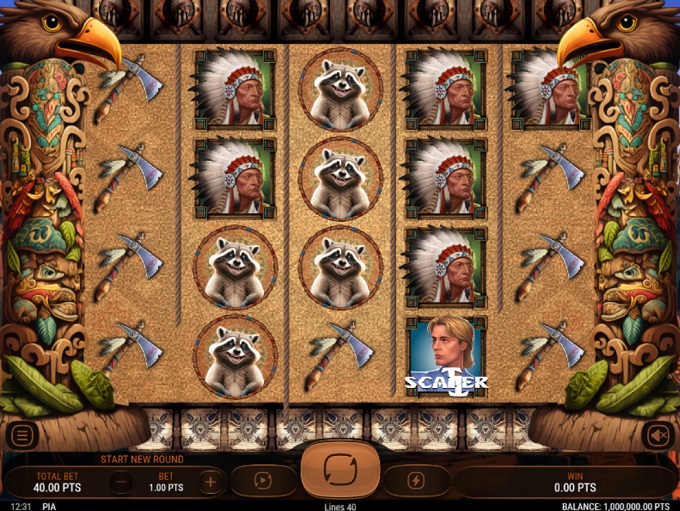 Native American tribe’s chief, wooden totem, and raccoon symbols come with the highest payouts, paying 4.000, 8.000, and 40.000 when playing with the highest bet. Traditional wigwam, tomahawk, and bird icons pay twice less.
