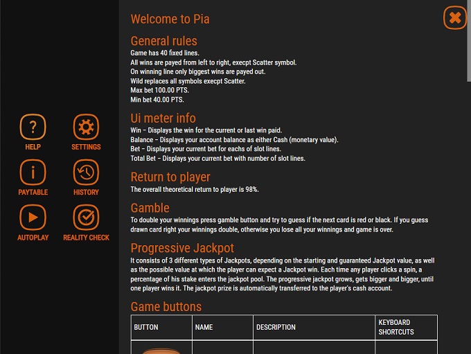Pia video slot comes with an amazing RTP of 98%.