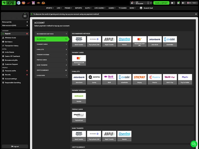 But don’t celebrate too early, tho - if you plan to deposit and especially withdraw, you’ll need to verify your account. The KYC process is somewhat strict here. Fansport may ask for ID, proof of address, and sometimes even a selfie or video verification call. Don't get us wrong - this is no red alarm, on the contrary - just the Casino's way of following all the safety rules. We salute that!
