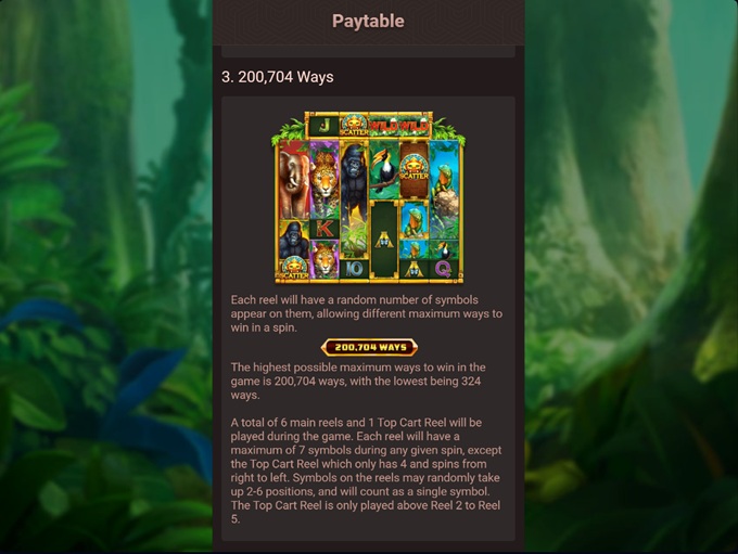 The Great Safari is played on six reels with an impressive 200,704 ways to win, rather than fixed paylines. Wins are formed on adjacent reels from left to right, simplifying the basic mechanics while still offering plenty of potential outcomes.