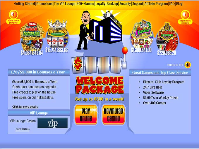 First Web Casino is a member of the Jackpot Factory Group. That is sufficient information, enough to ensure that players will enjoy the gaming here. The lobby takes you back to the nineteen fifties but believe me, the games are new. Navigation through the casino is uncomplicated mainly because the lobby has all the required information