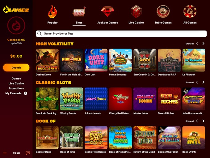 Flamez Casino reveals the content from a carefully selected group of well-known software providers. Once you browse the lobby, it's pretty clear that the games come from studios with a solid track record in the industry.