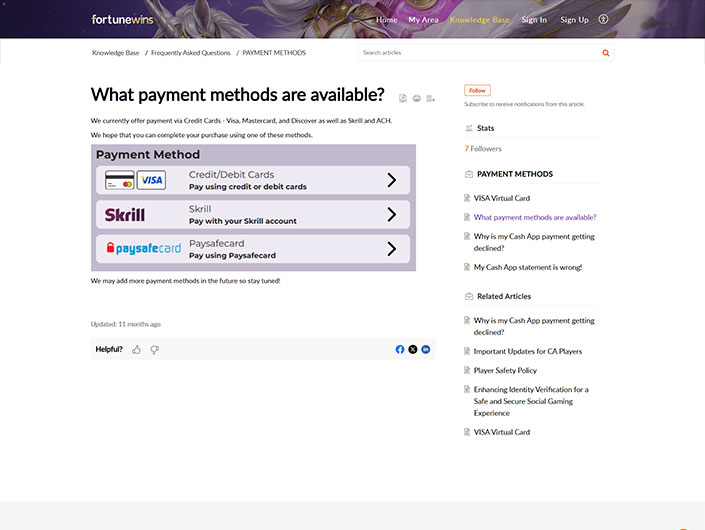 At some point, most of you will need a bit of help. Fortune Wins does cover the basics. The ‘Contact Us’ section leads straight to the FAQ page, which answers many different, common questions. It covers the usual topics, like account details, gameplay, and payments. For many players, that’s enough!